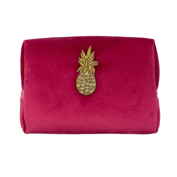 Bright Pink Make-up Bag and Pineapple Pin
