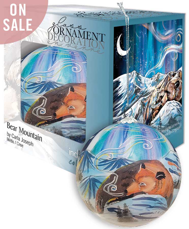 Glass Ornament by artist Carla Joseph. Her cultural background is Metis/Cree. The artist is paid a royalty on every sale.