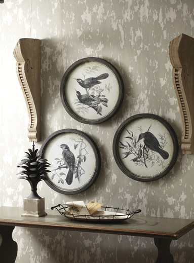 Round Bird Pen & Ink Wall Art with Glass (3 assorted)