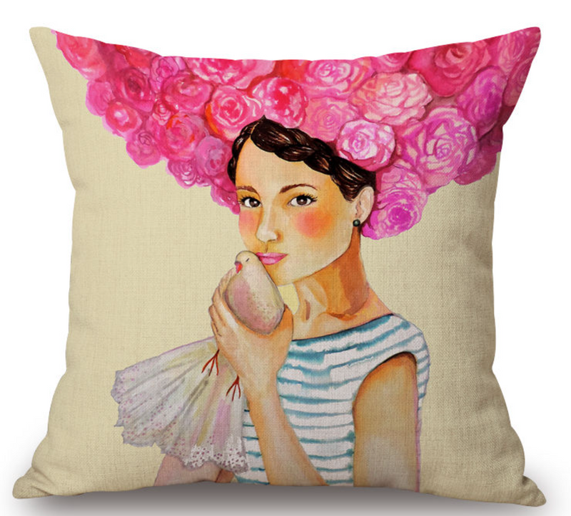 Pink Lady with Bird Pillow