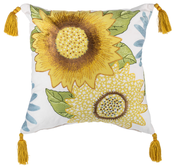 Embroidered Sunflower Tassel Pillow