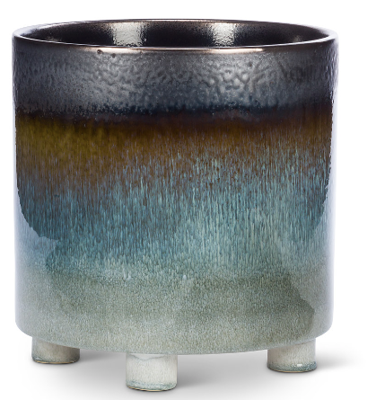 Elevate your decor as well as the height of your favourite plant with this Large Ombre Glazed Footed Planter. Crafted out of stoneware, its distinctive bronze-to-blue ombre pattern is accented with a striking reactive glaze finish for a uniquely artisanal look that stylishly complements any type of decor. 10" H X 10" D.