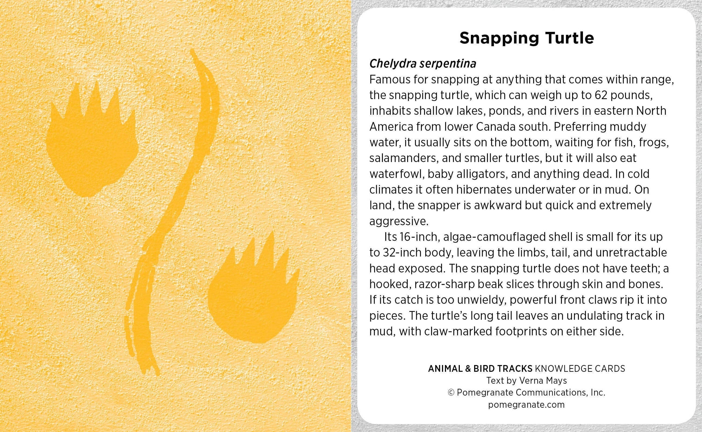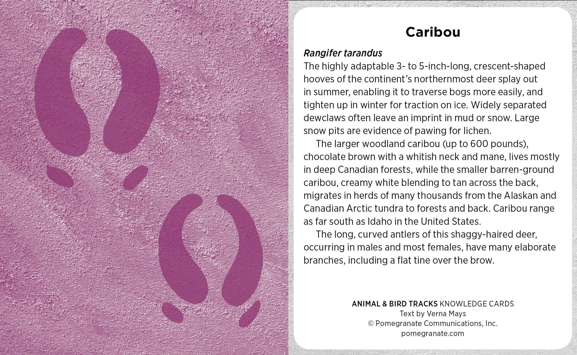 How do you tell a badger’s track from a porcupine’s, or a red-headed woodpecker’s from a red-tailed hawk’s? It might behoove you to know if those tracks you’re following belong to a skunk, by the way! Become an expert outdoor detective by studying the footprints illustrated in this 48-card deck—or just carry it with you on your next outing. A picture of a bird’s or animal’s footprints appears on one side of each card, while the other side names the creature and presents its physical characteristics, footprint size, and diet, and notes on its natural history. Animal & Bird Tracks is the perfect companion for boosting your observation skills to ensure your optimum outdoor experience. • With 48 fact-filled cards per package, Knowledge Cards are a great source of condensed information—all in a deck the size of a pack of playing cards.